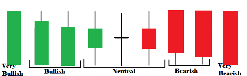 A long green candle is considered very bullish, as throughout the session, buyers have full control. Similarly a long red candle indicates that the session is very bearish and the bears have full control.