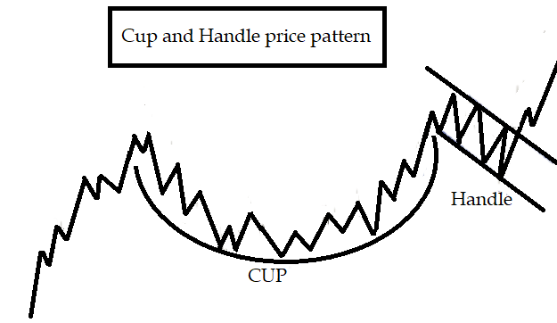 The Cup and Handle pattern on a price chart looks visually as a cup with a handle.