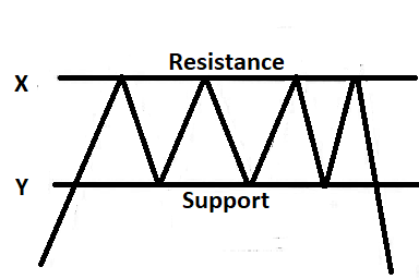 In the above diagram, the price moved between point X and Y at the top for sometime before going down.