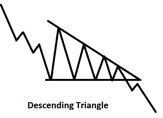The lower line of the descending triangle acts as a support line and the upper line acts as a resistance line.